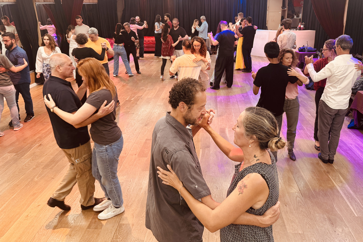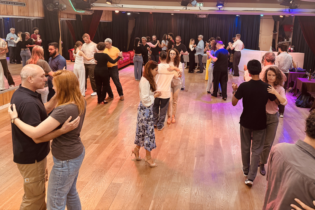 Lorsque vous prenez un cours de tango, ce n’est pas uniquement le cours de tango lui même que vous visez. C’est une danse de couple mais également une danse sociale. Le cours est un moyen pour vous d’aller par la suite danser dans un bal de tango argentin, appelé "Milonga".
